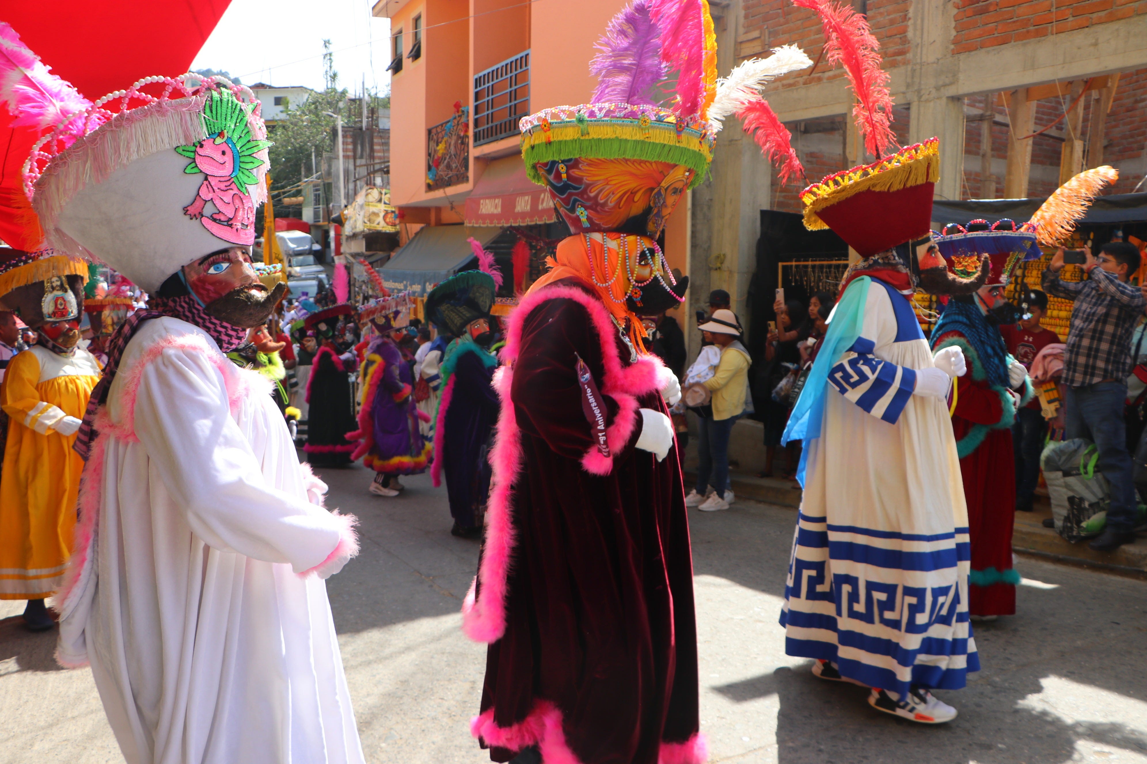Al acercarme a la capilla divisé a los chinelos bailando con alegría. Mucha gente se reunía a su alrededor y hacían bulla.